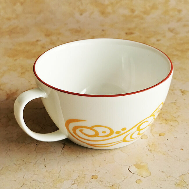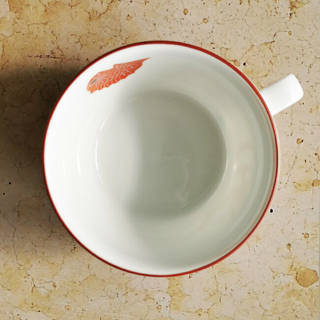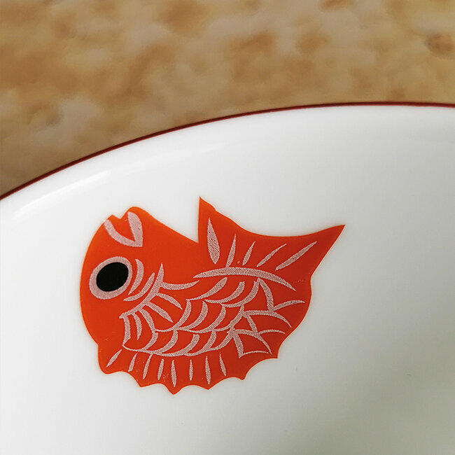A Mino ceramic (porcelain) cup decorated with the "Tai" (sea bream) fish, a symbol of luck and prosperity and a good luck charm in Japan. Hand-painted by artisans, the sea bream's interior shimmers with a silver pattern, while golden waves adorn the exterior. Representing vitality and success, this fish leaping among the waves is a metaphor for a bright future.