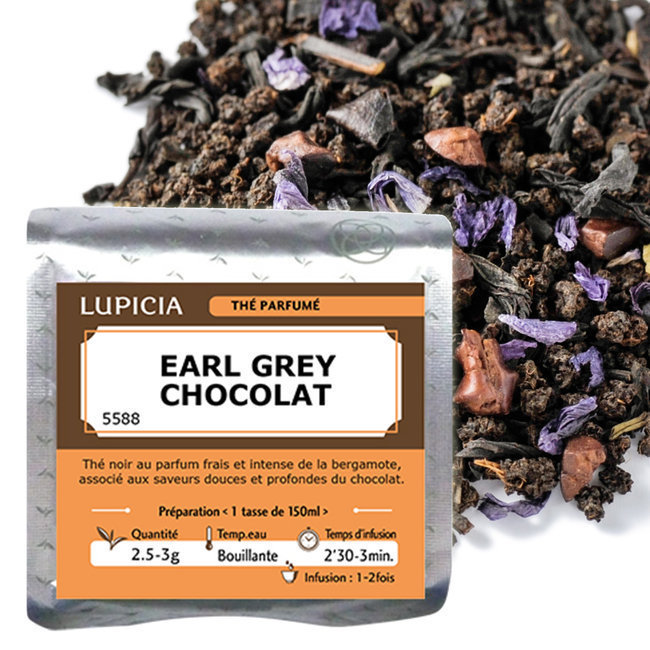 Lupicia's "Earl Grey Chocolate" Black Tea is not simply a flavored tea; it's a complex blend of black teas from India and Kenya (Africa). This combination provides a structured and robust base, ideal for supporting the intensity of fresh bergamot. The originality of this creation lies in the addition of real roasted cocoa beans and mallow flowers, creating a deep, dark-hued liquor.