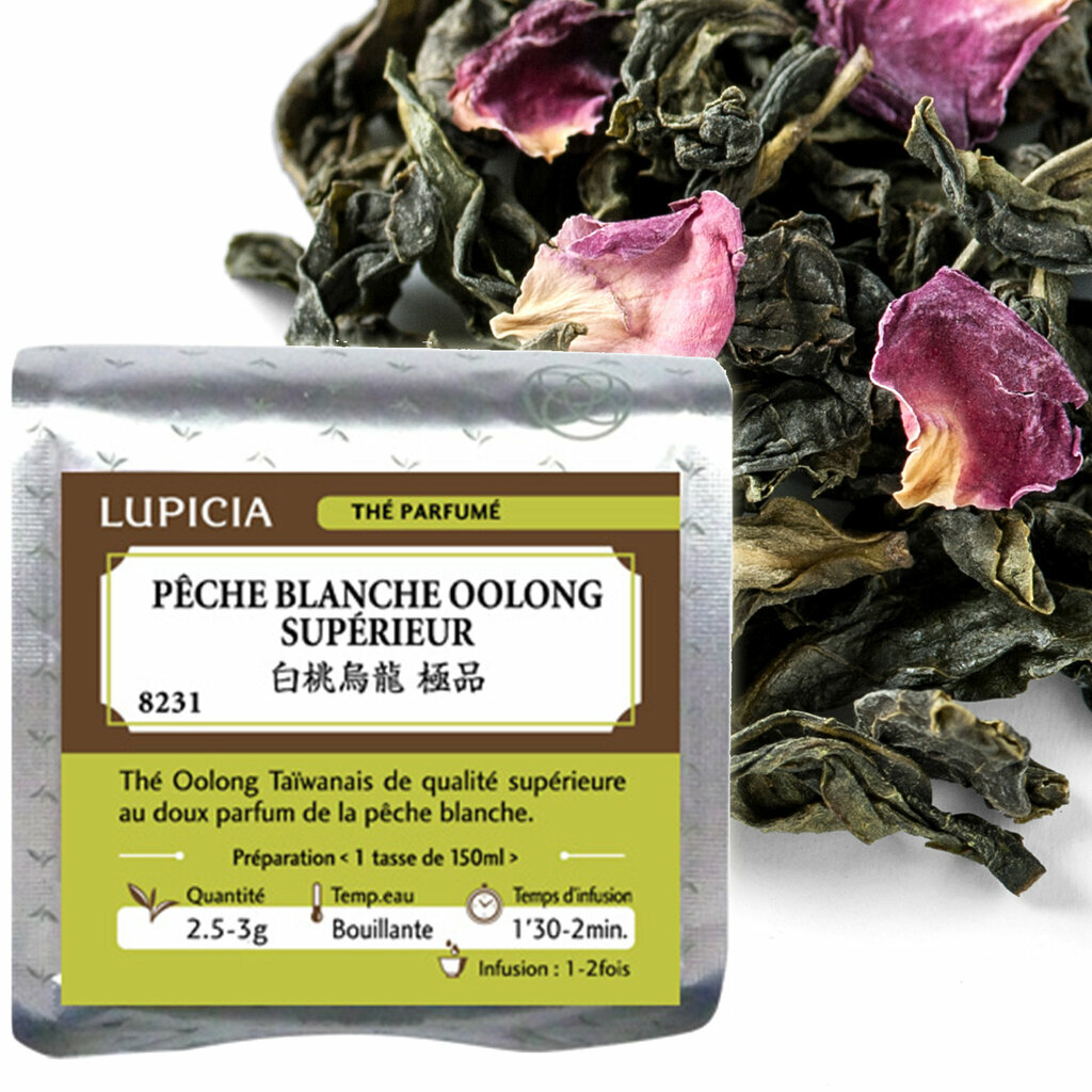 Discover one of Lupicia's most iconic teas: White Peach Superior Oolong. This exceptional blend combines the refinement of a high-quality Taiwanese Oolong tea with the delicate, sweet fragrance of Japanese white peach. A subtle combination that offers a velvety, fresh, and intensely fruity cup.