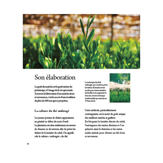 Young shoots of tea plants usually appear at the beginning of April. The plantation is then completely covered with thatch or drapes in order to deprive the tea plants of sunlight. This is called “shady” tea cultivation. This particularly restrictive method is the secret of the unique taste of the best matcha and gyokuro. By blocking direct sunlight, the astringency of tannins decreases, preserving theanine and other amino acids for a smooth, flavorful tea.