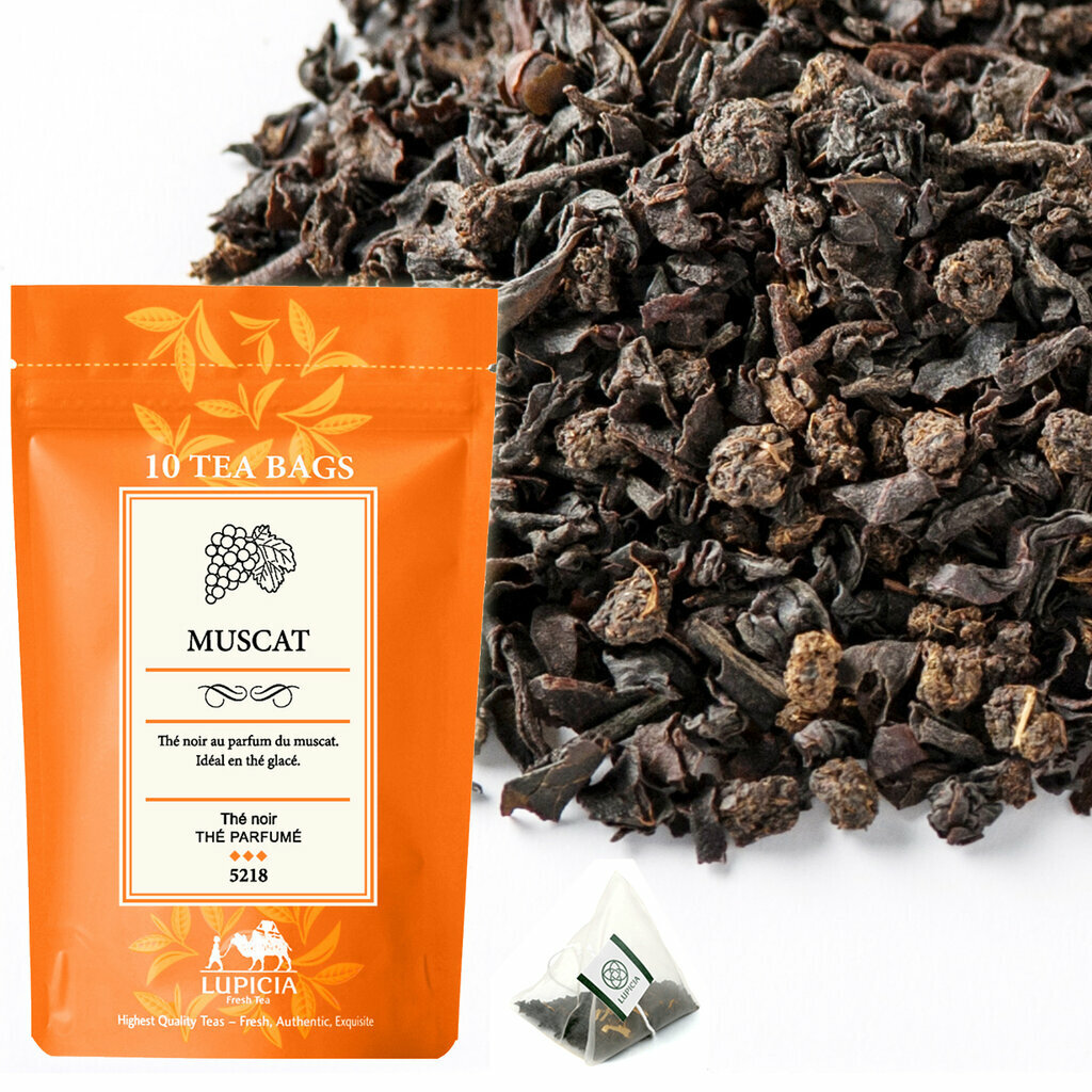 Lupicia's Muscat tea is an ode to indulgence and finesse. This iconic blend is not based on a single tea, but on a blend of black teas from three different origins, including Indonesia. This complex base has been specially crafted to blend harmoniously with the sweetness of white grapes, creating a sensory experience without any harshness.