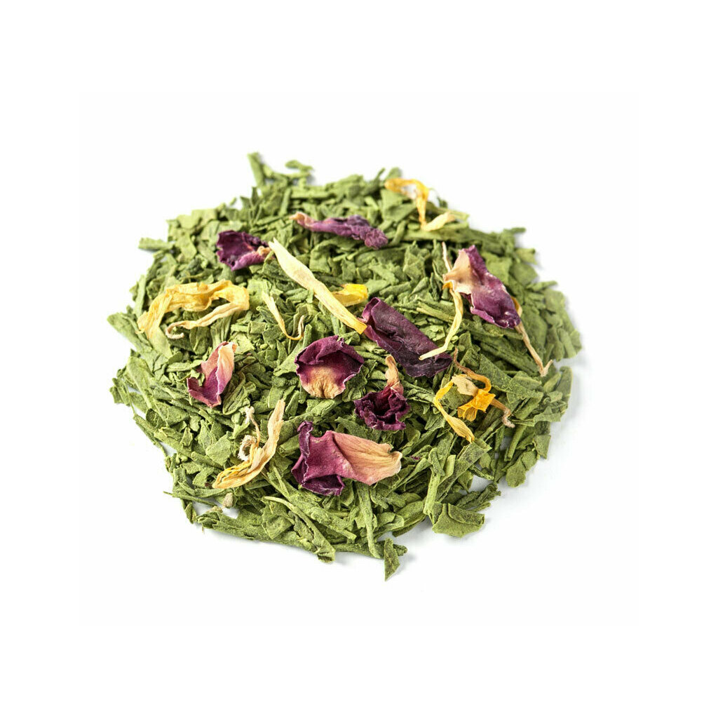 • Ingredients: Green tea, rose petals, marigold, matcha powder, aroma