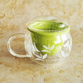 This mug, made of heat-resistant glass, is very light and easy to hold. Mug comes with silicone strainer.