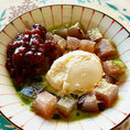 Warabimochi is a mochi made from fern starch which can be covered with kinako (toasted soy flour). It is very popular in summer, especially in the Kansai and Okinawa region.