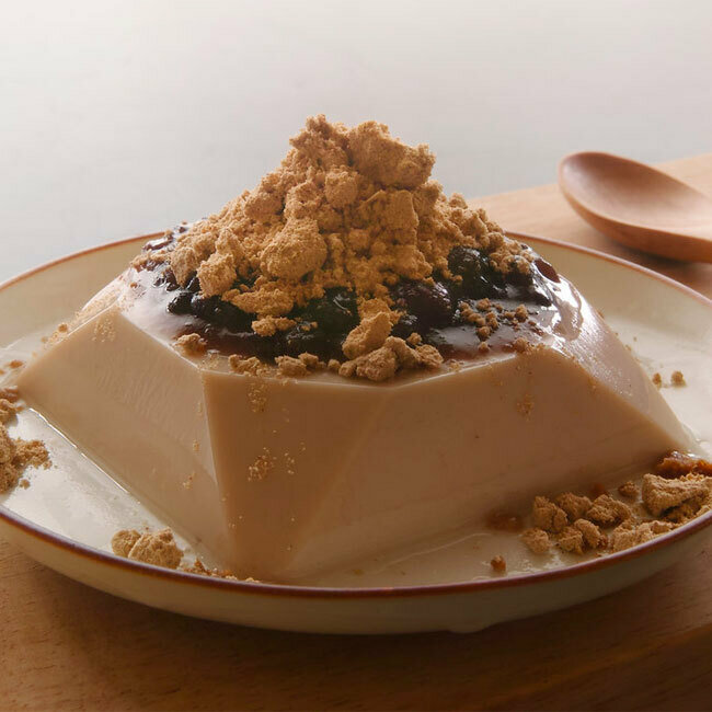 Using soy milk, Houmoto has created a pudding that retains the soft texture of sesame tofu while offering a subtle soy flavor and the delicate aroma of sesame. Enjoy it topped with our red bean paste made from Hokkaido-grown azuki beans and kinako (roasted soybean flour), which are included.