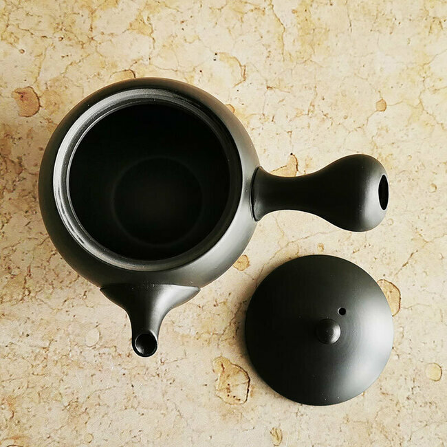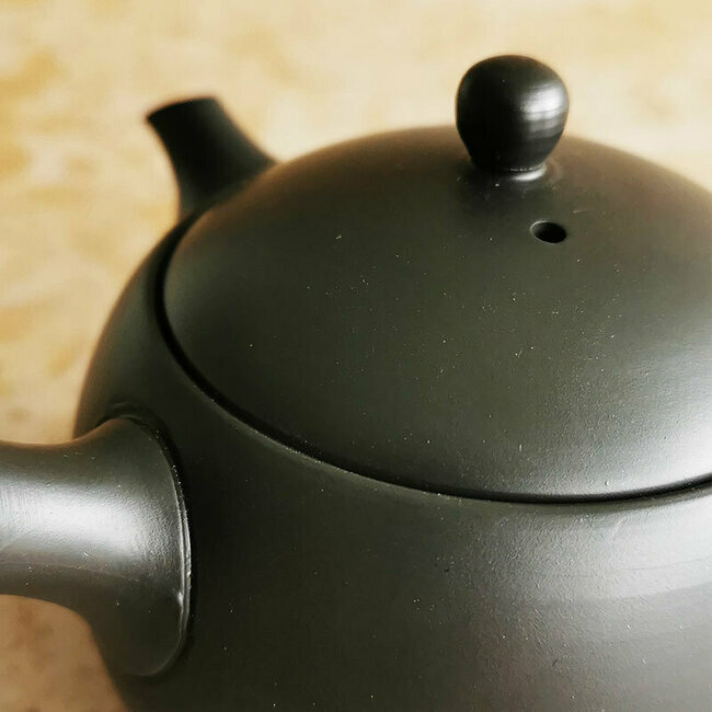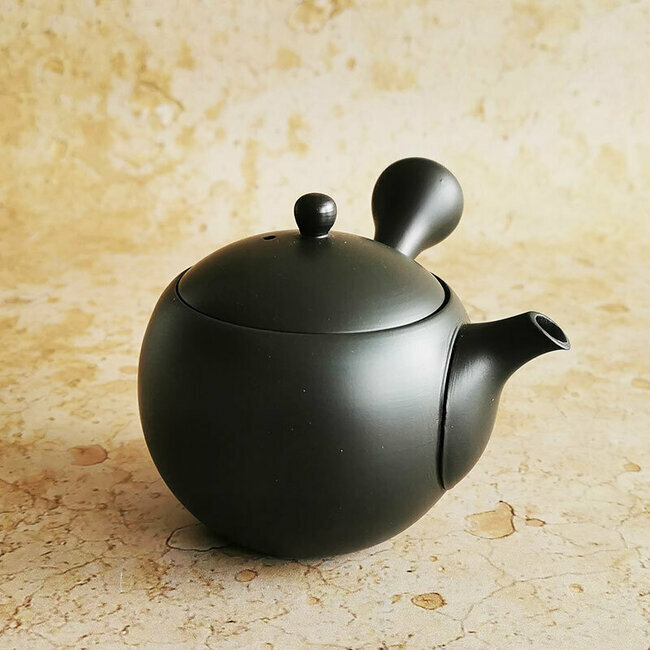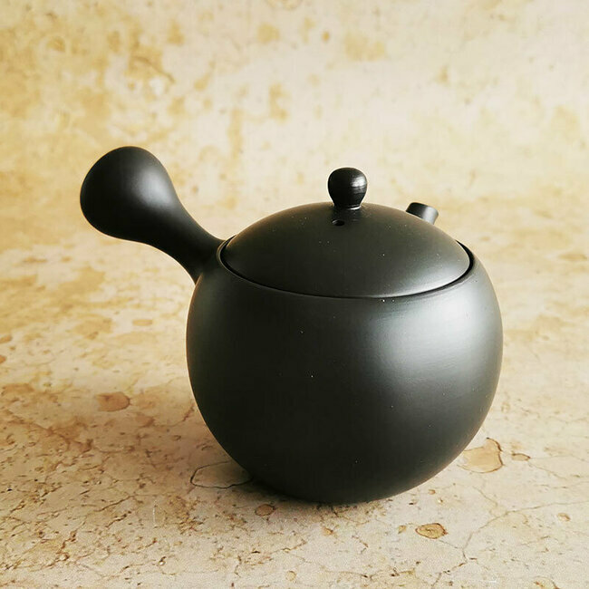 Modern round-shape clay tea pot from Tokoname, Japan. With internal ceramic filter, you are sure to enjoy Japanese green tea.