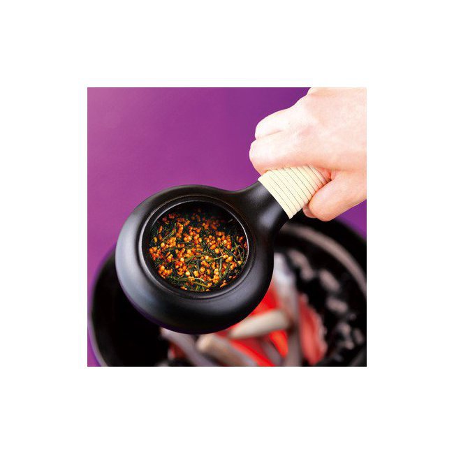This original mini pot from LUPICIA will allow you to transform your teas into roasted teas. Easy to use and fun, this small utensil allows you to toast around 10g of tea (small model) or 30g (big model), but you can be satisfied with the quantity for a cup, i.e. around 3g. In addition to green tea, oolong teas as well as black teas are also recommended. Take your usual tea and discover a new flavor in surprising ways. Enjoy the aromas of a freshly roasted tea, you can also give a second life to your teas whose BBD is approaching by roasting them. This small pan can also be used for other condiments, it is a traditional Tokoname-yaki made in clay in Japan whose handle is wrapped in wicker for more comfort. After roasting the tea, slide the tea leaves through the hollow handle directly into your teapot.