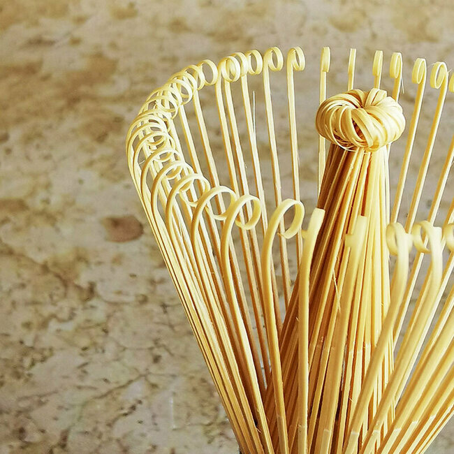 An essential utensil for traditional Japanese tea ceremony, this tea whisk is carved from a single piece of bamboo, and then sliced into pieces. It is used to whisk matcha (powdered green tea) and hot water to create traditional Japanese green tea.