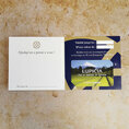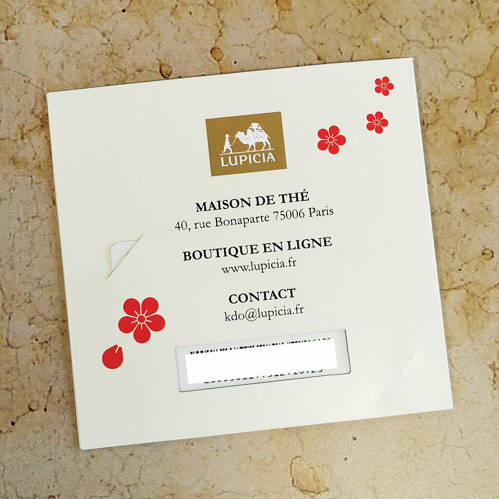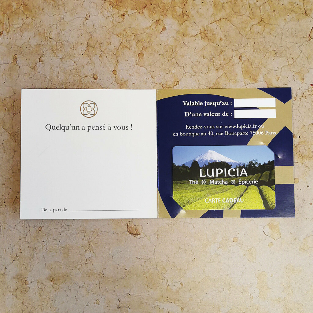 Discover our gift cards* to introduce your loved ones to the world of LUPICIA. You can choose a gift card in denominations of €30, €50, €80, €100, €120, or €150. The card will be presented in a cardboard holder with a 100% Japanese design, inside which you can write your message..
